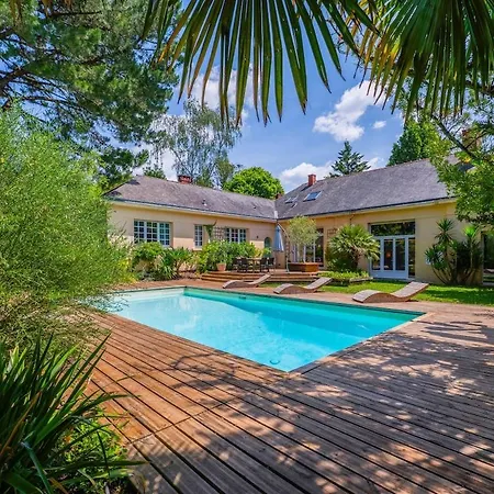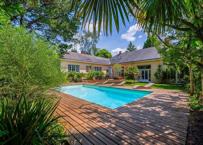 Die 8-Zimmer- Villa De La Plume Nantes verfügt über eine Terrasse mit Aussicht auf den Pool sowie einen privaten Swimmingpool.